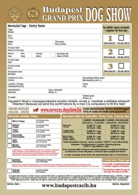 A nevezési díjak a Magyar kutyafajták esetében 50%-os kedvezménnyel számítanak.