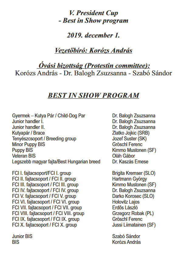 14.30: President’s Cup CACIB Show Best In Show program